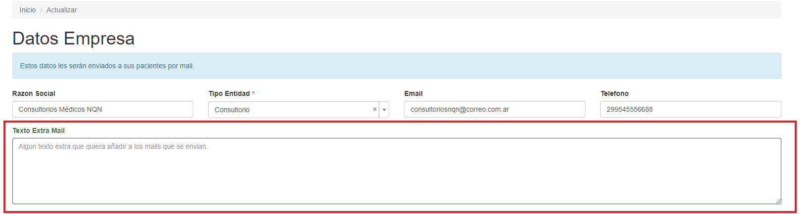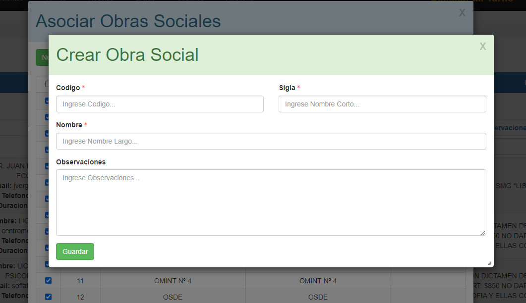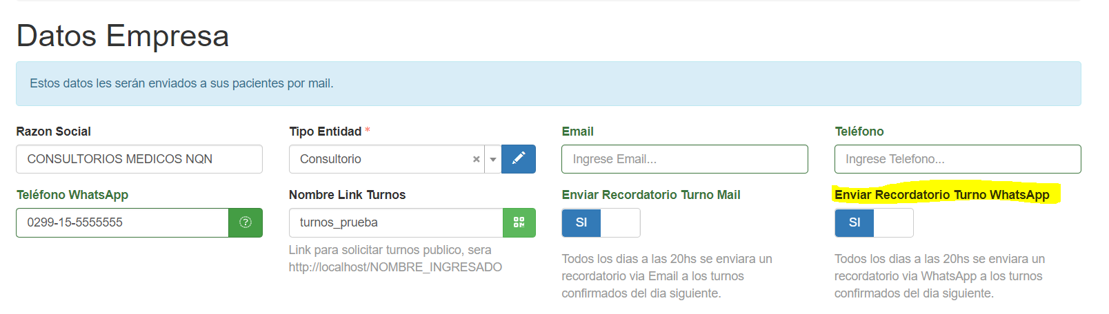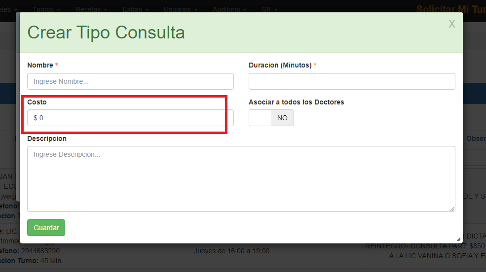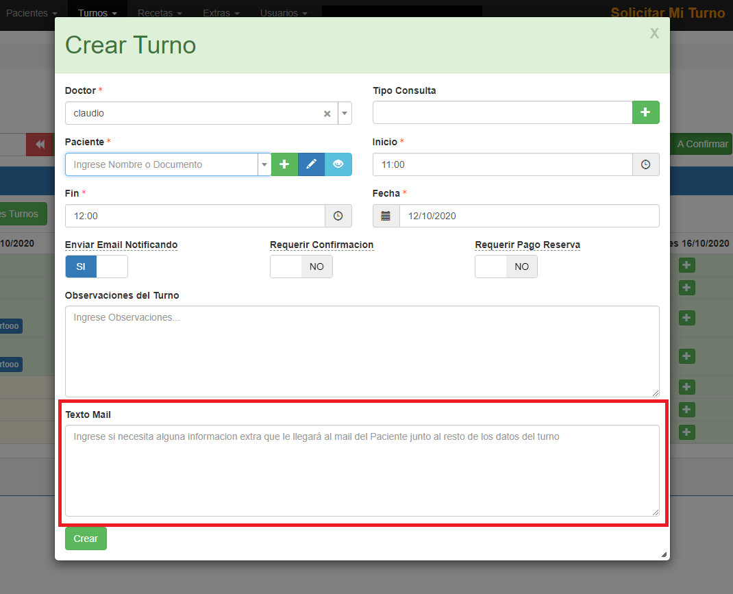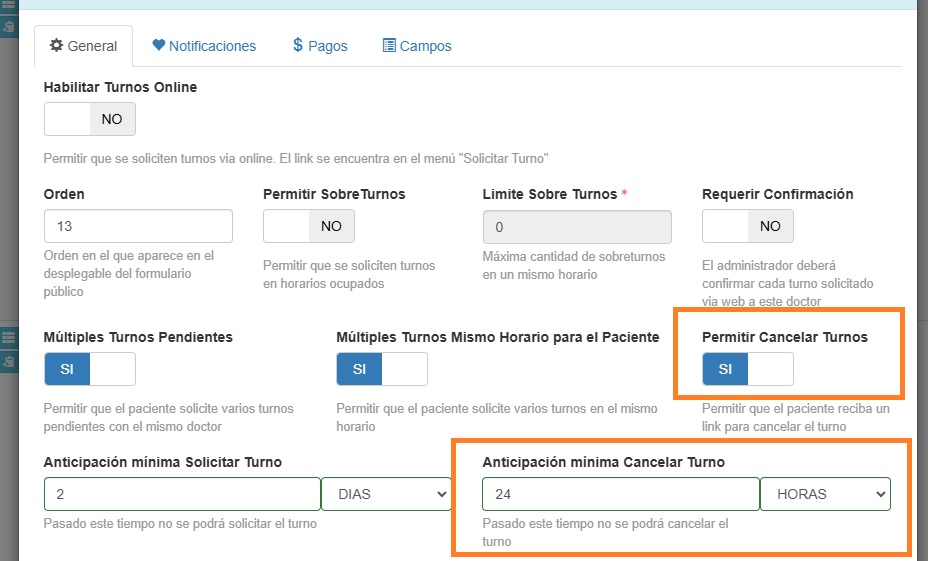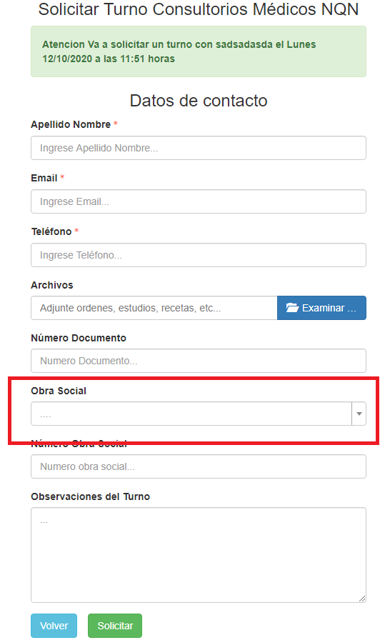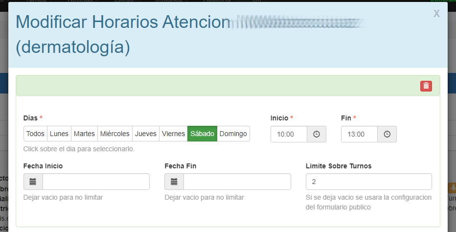 menú Doctores/Listar/Configurar Formulario Turnos Publico