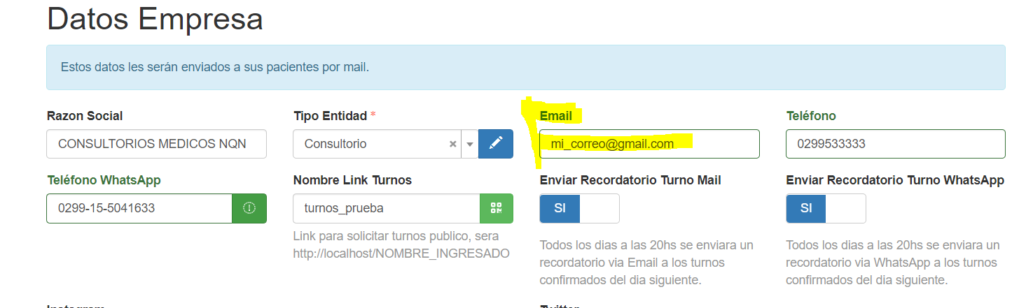. Si no existe ninguno de estos dos emails configurados se usará el email con el que te registraste.