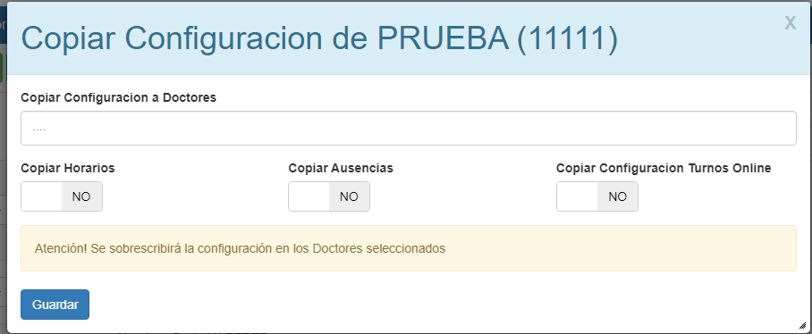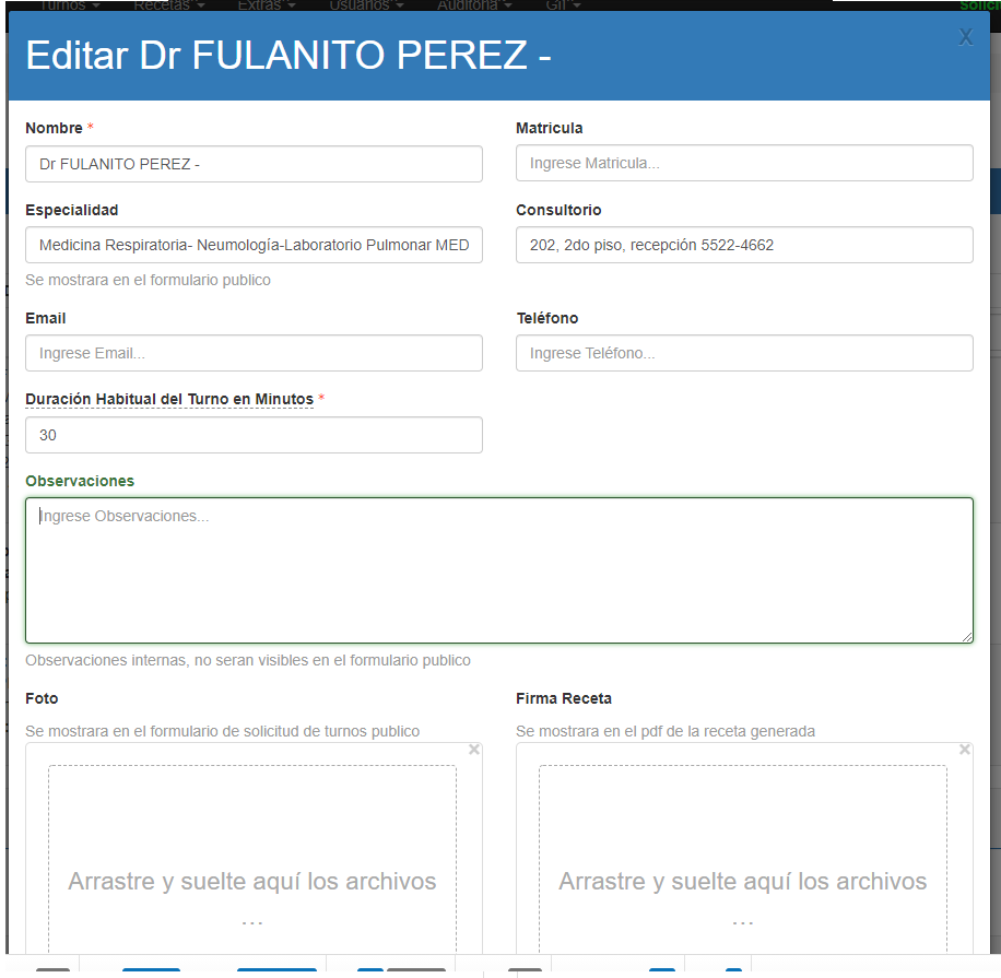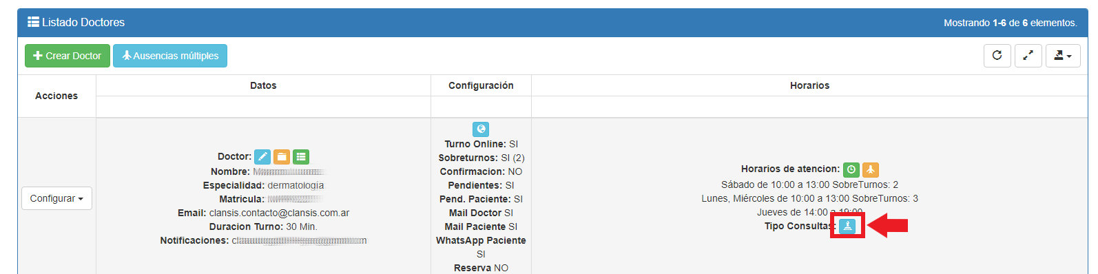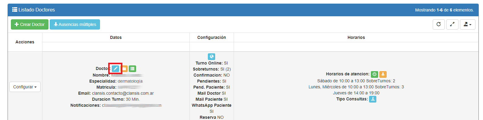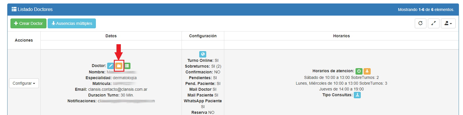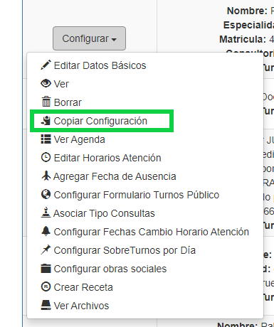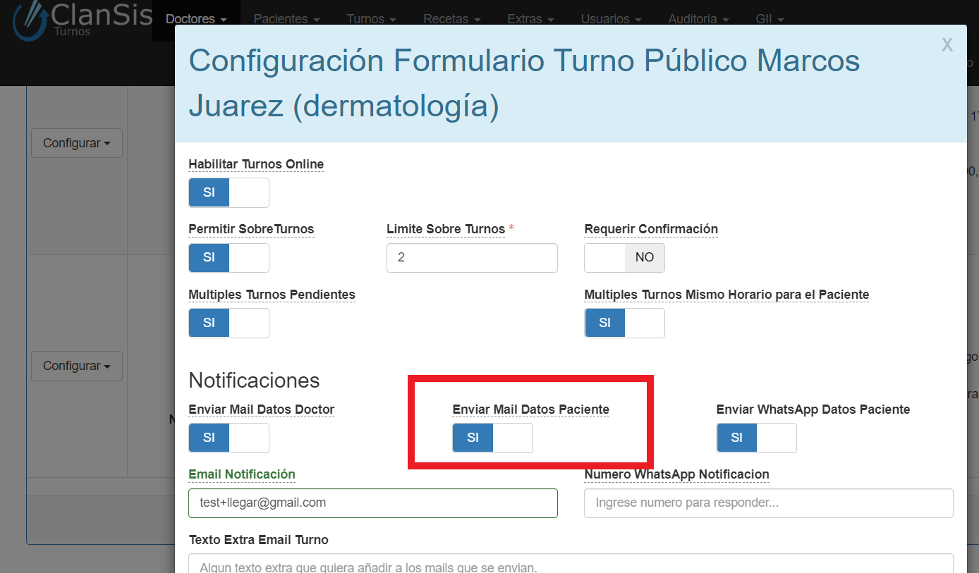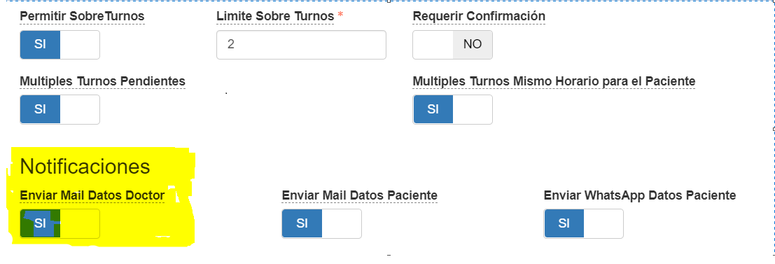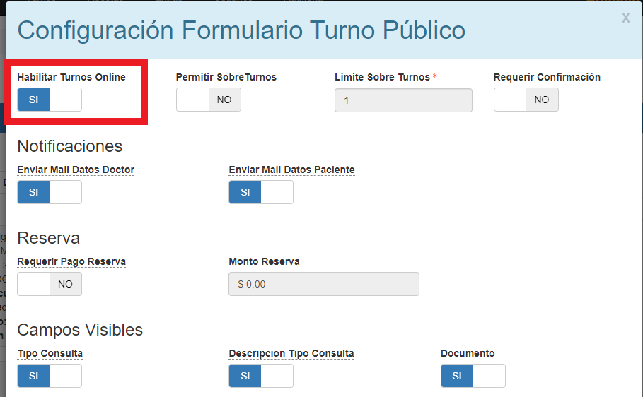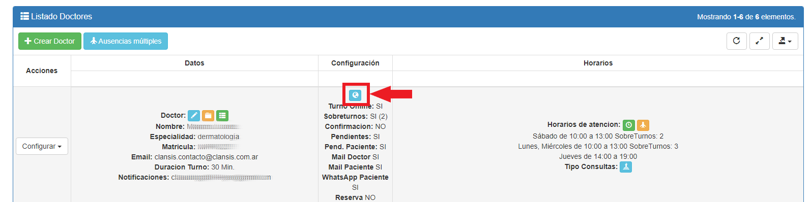 menú Doctores/Listar/Configurar Formulario Turnos Publico