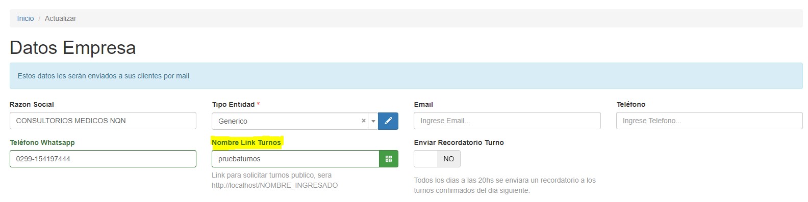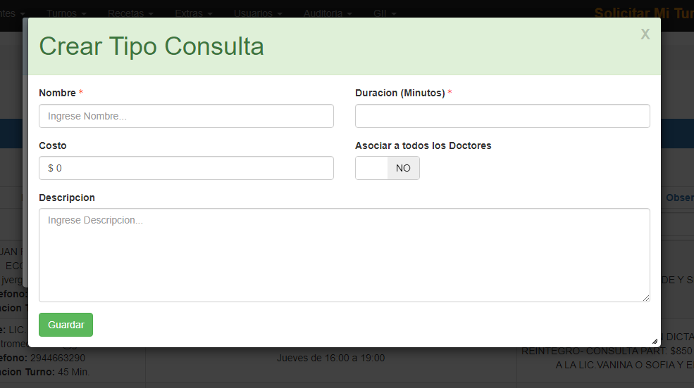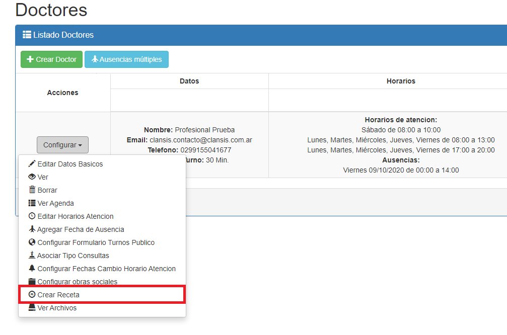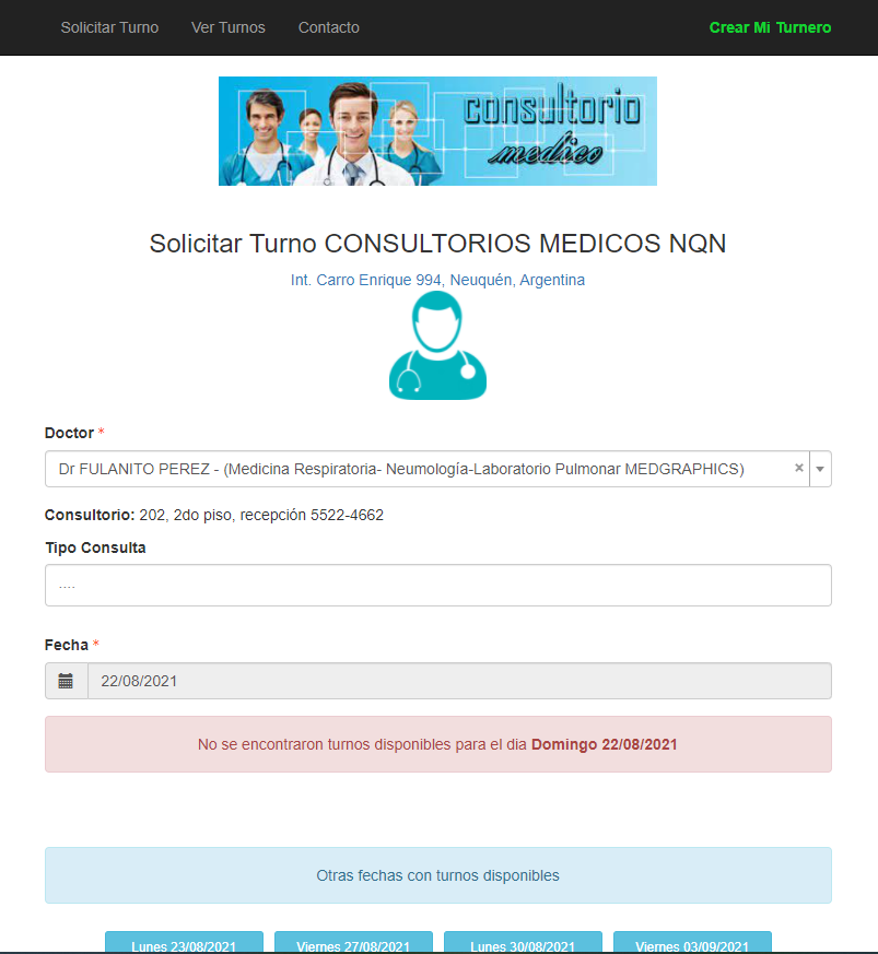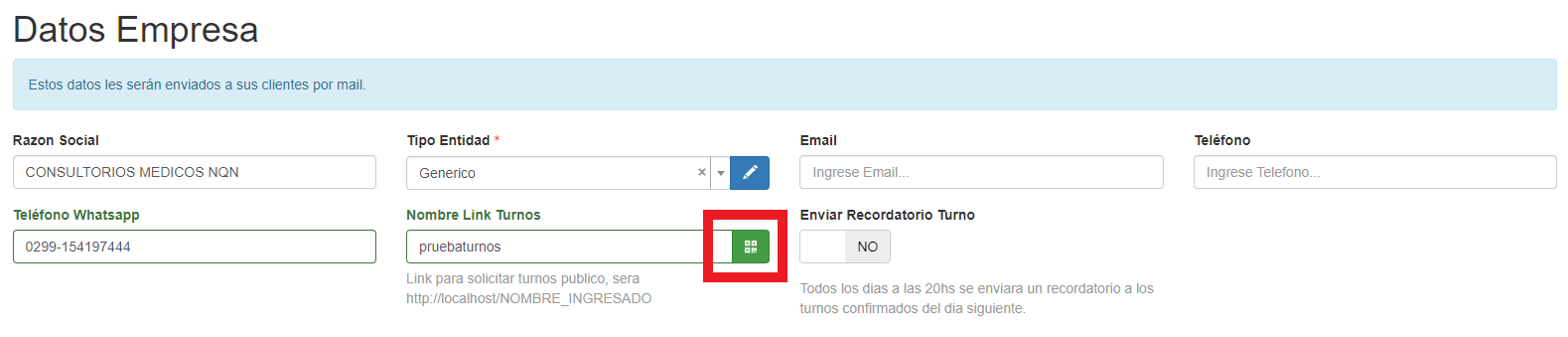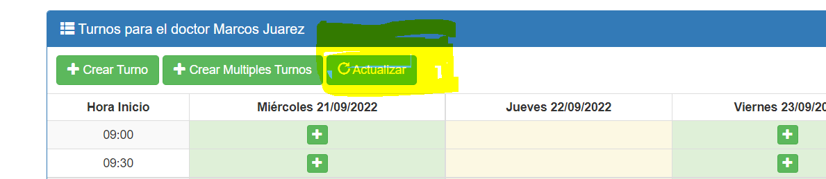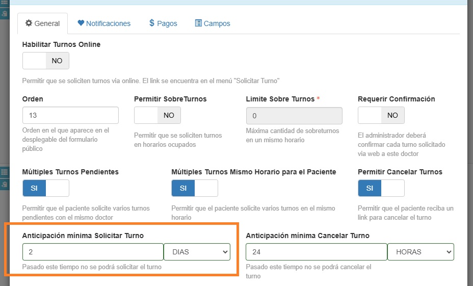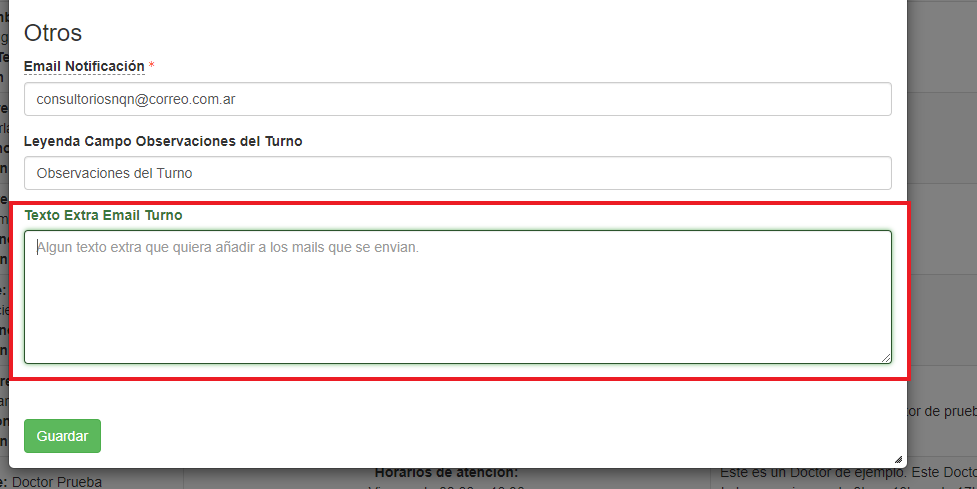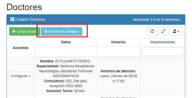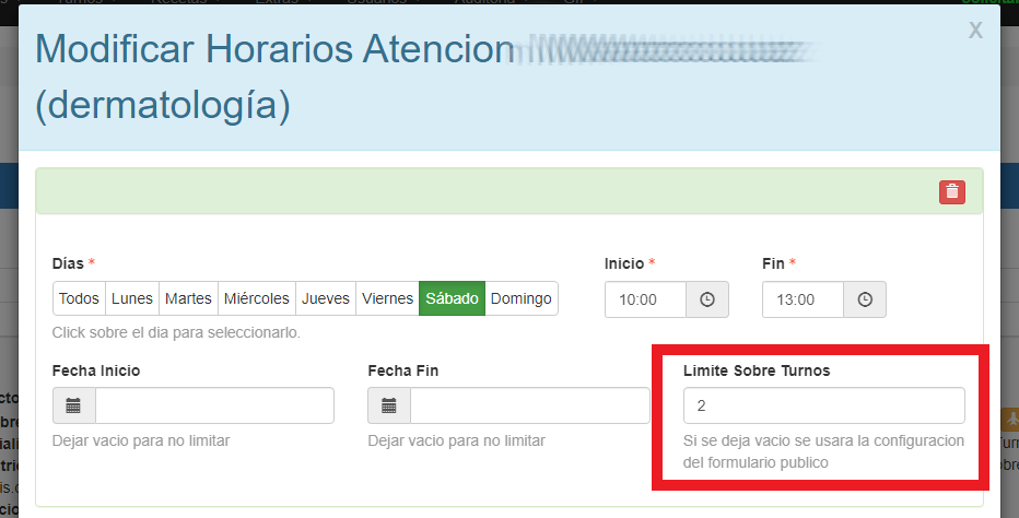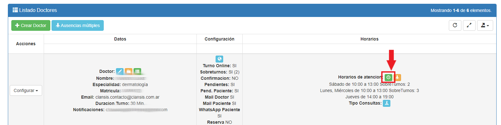 menú Doctores/Listar/Configurar Formulario Turnos Publico