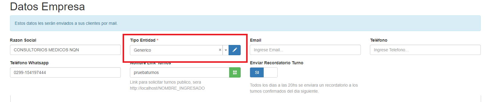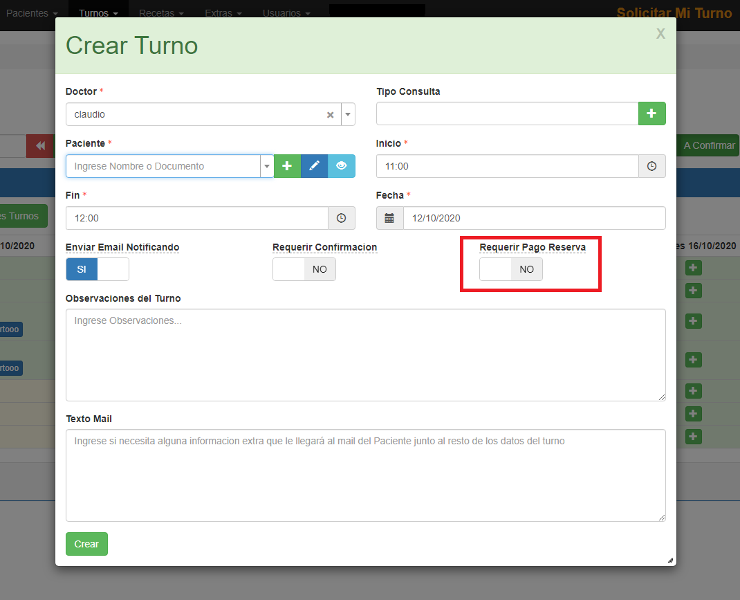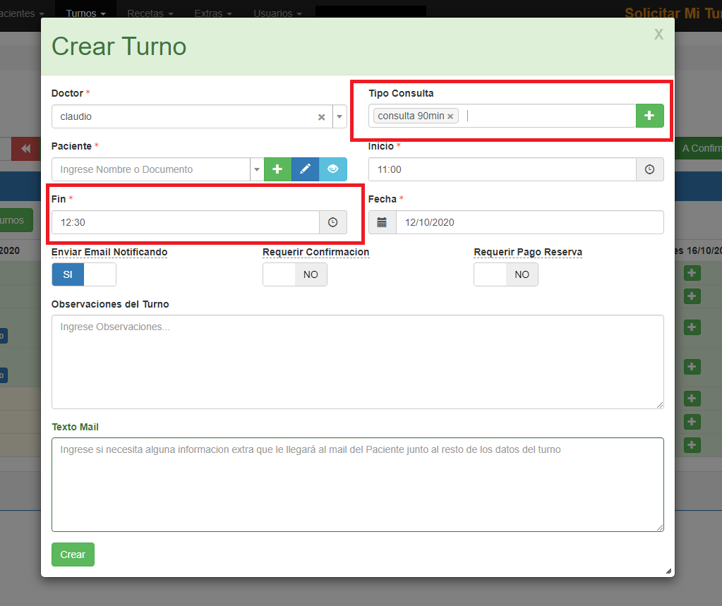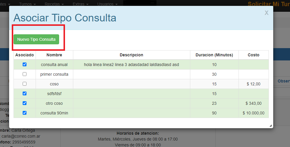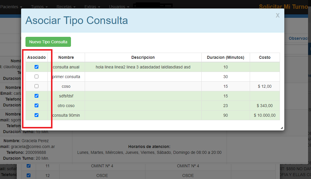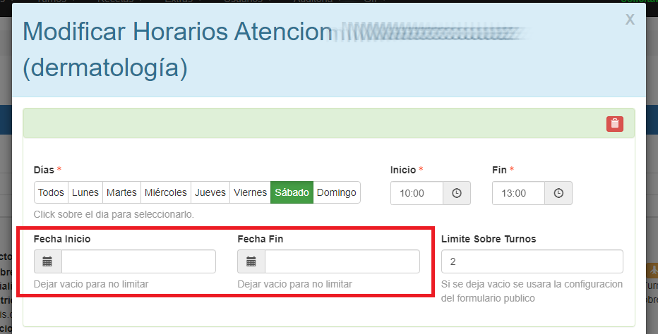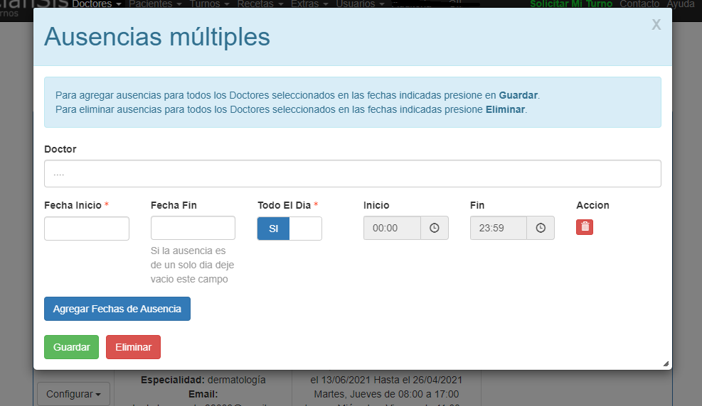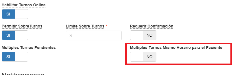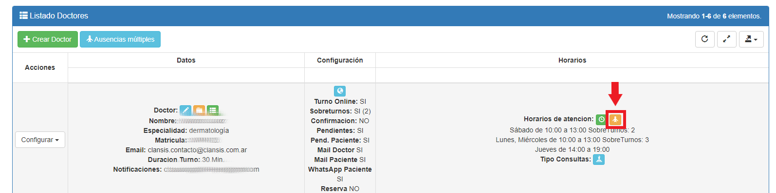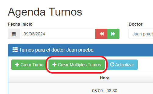 menú Doctores/Listar/Configurar Formulario Turnos Publico