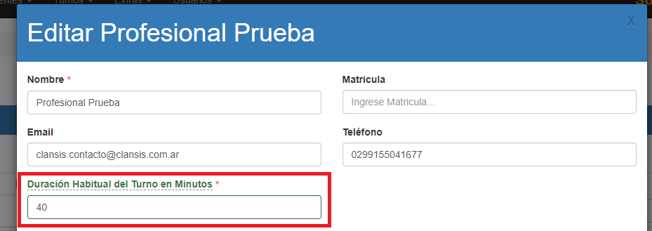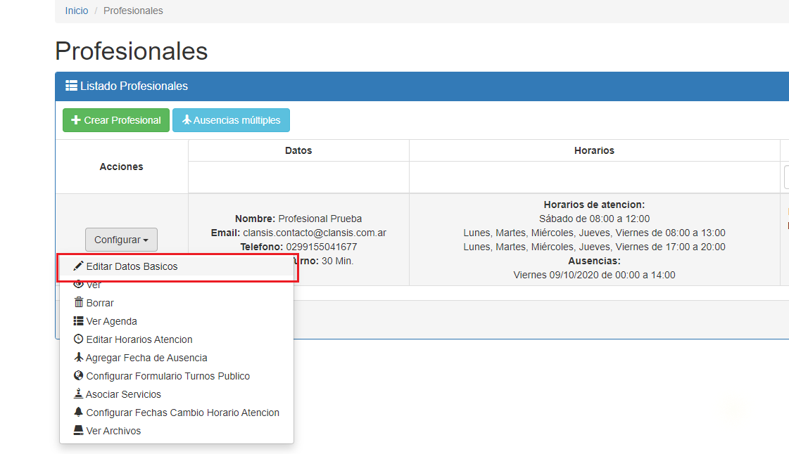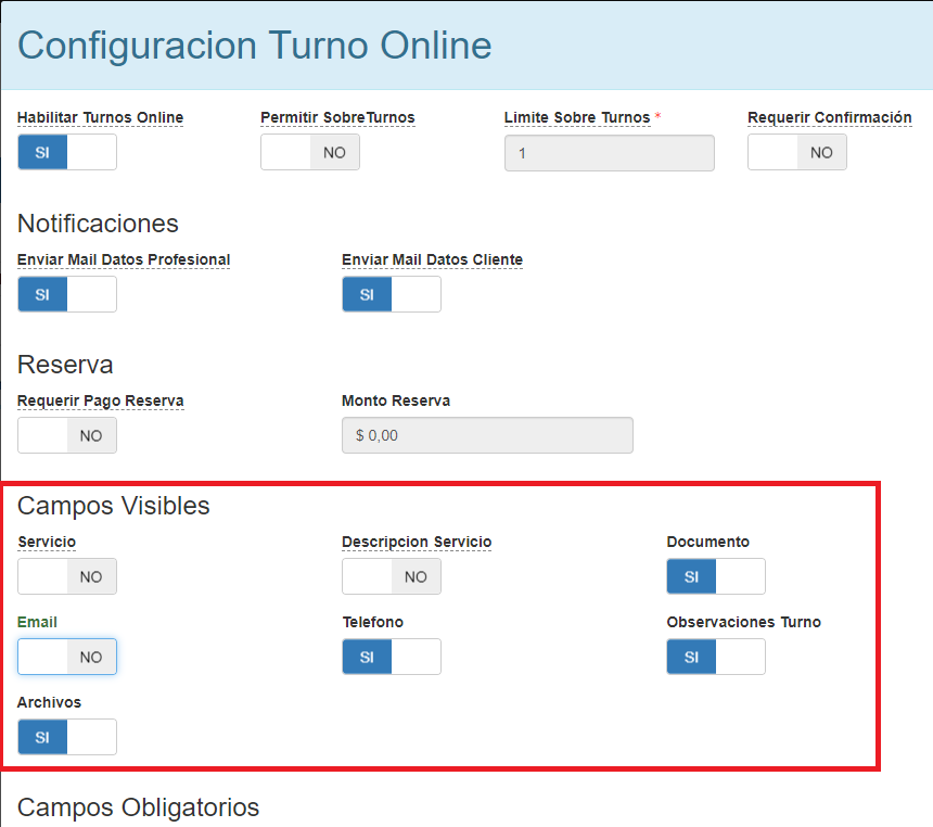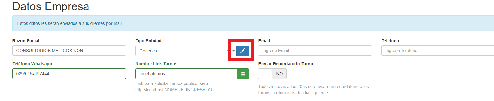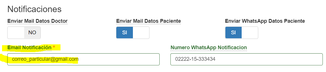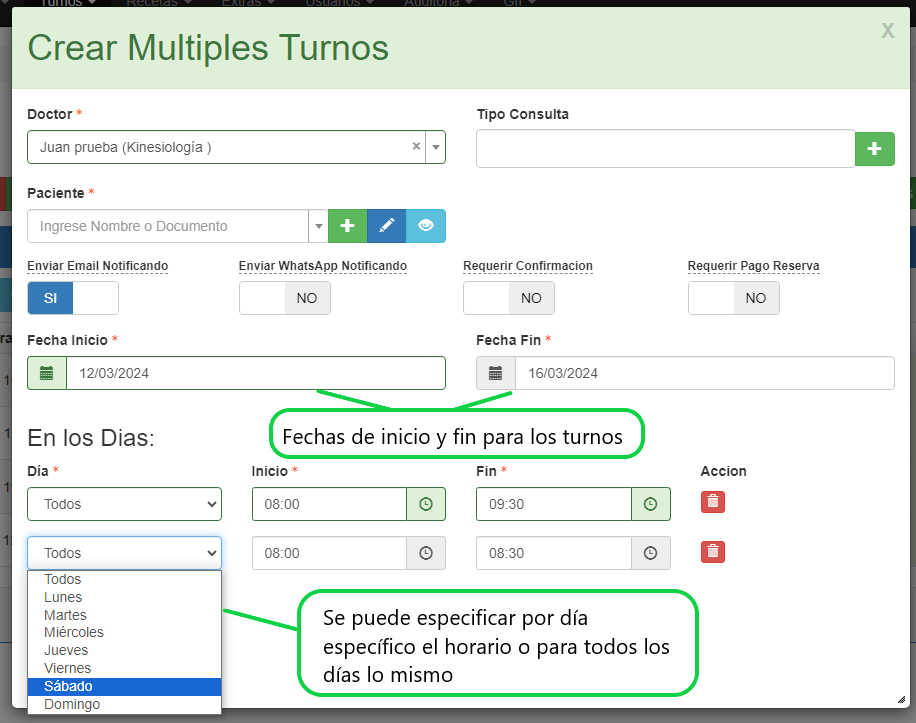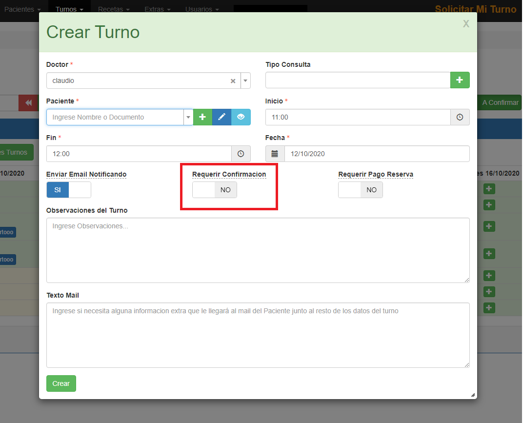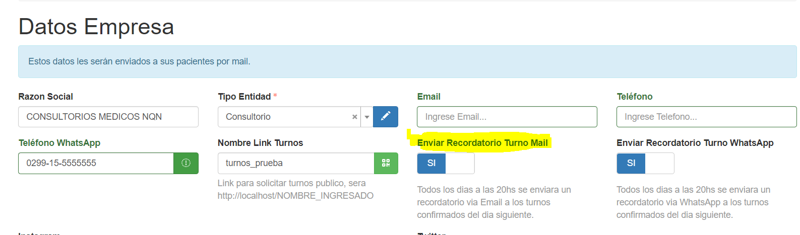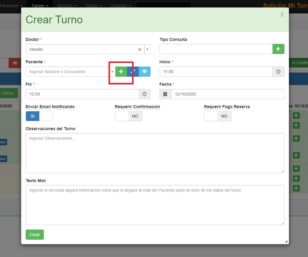 menú Doctores/Listar/Configurar Formulario Turnos Publico