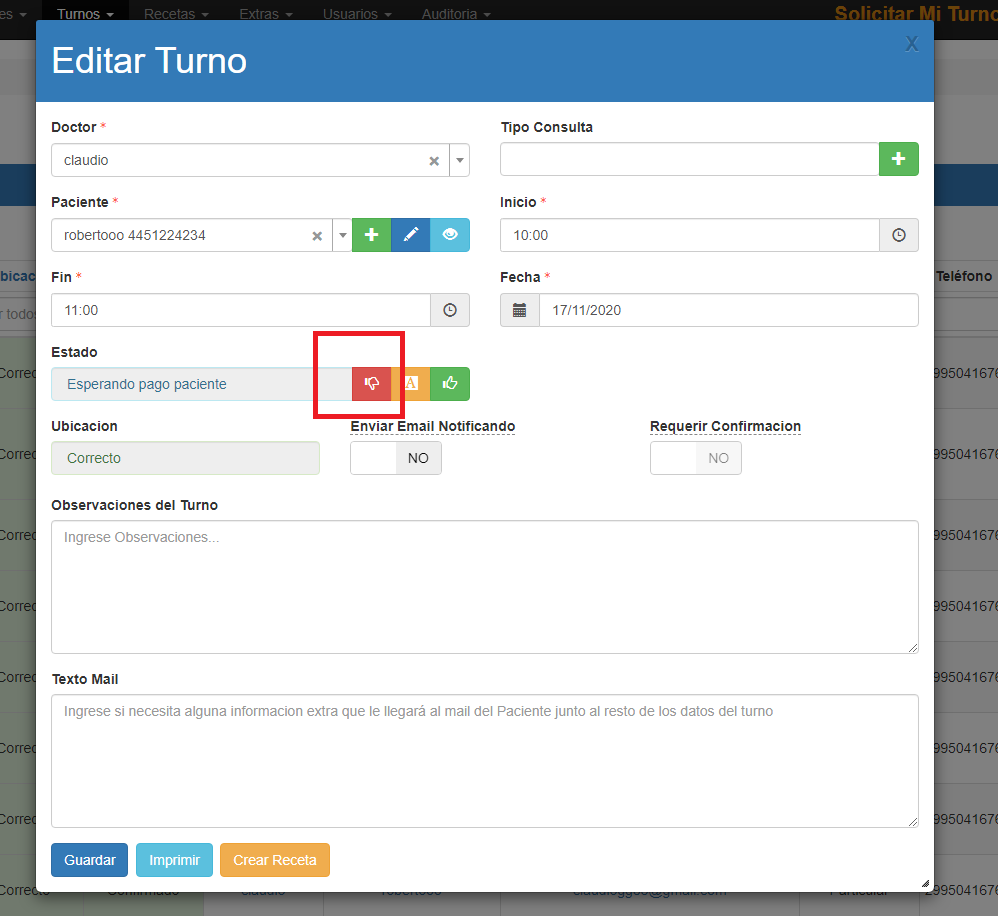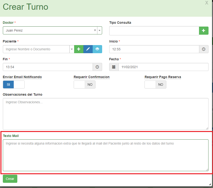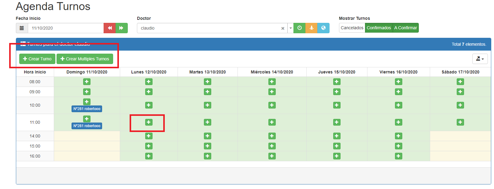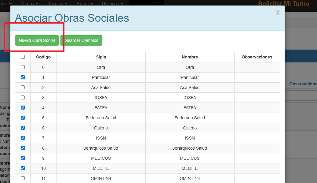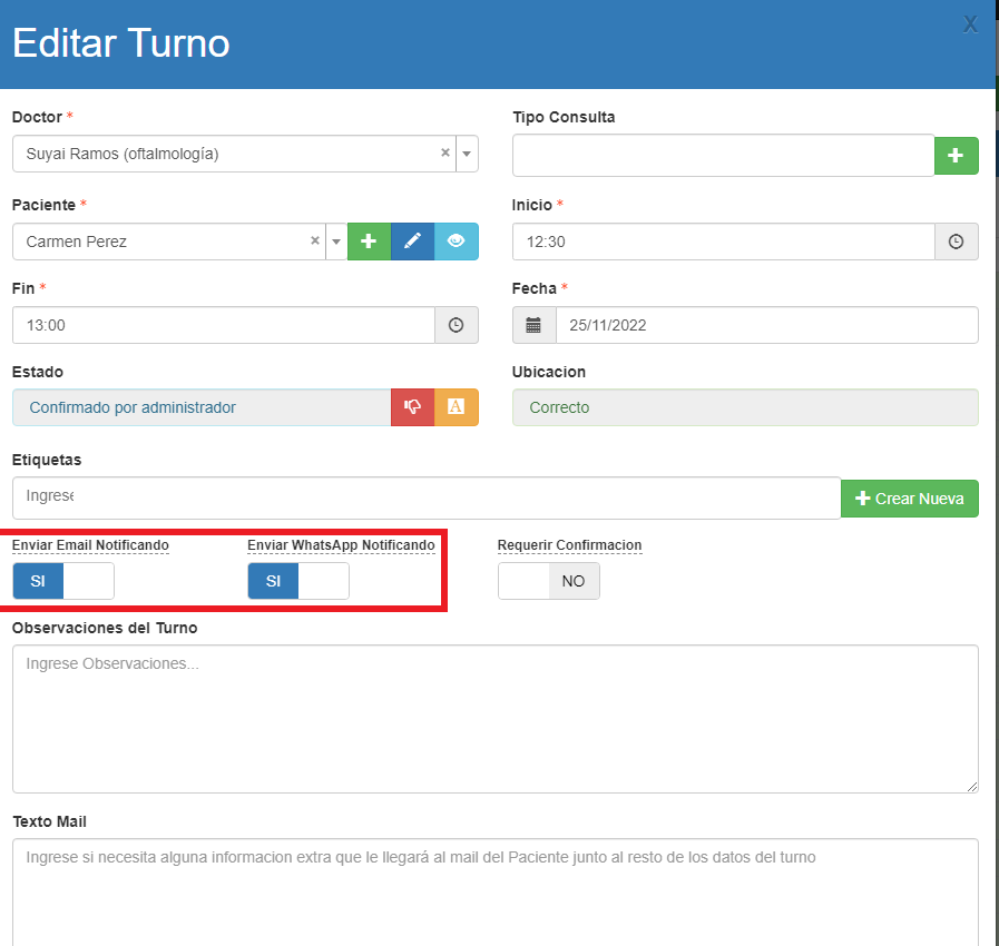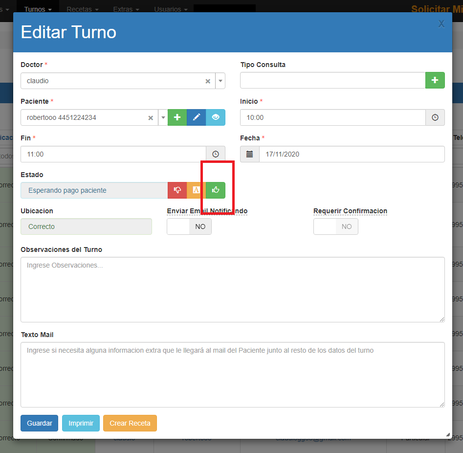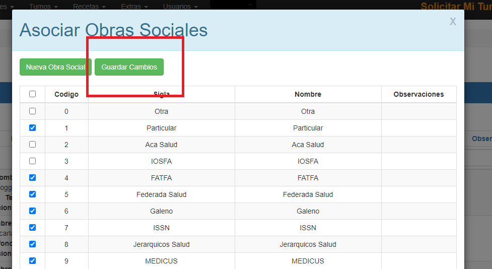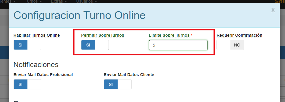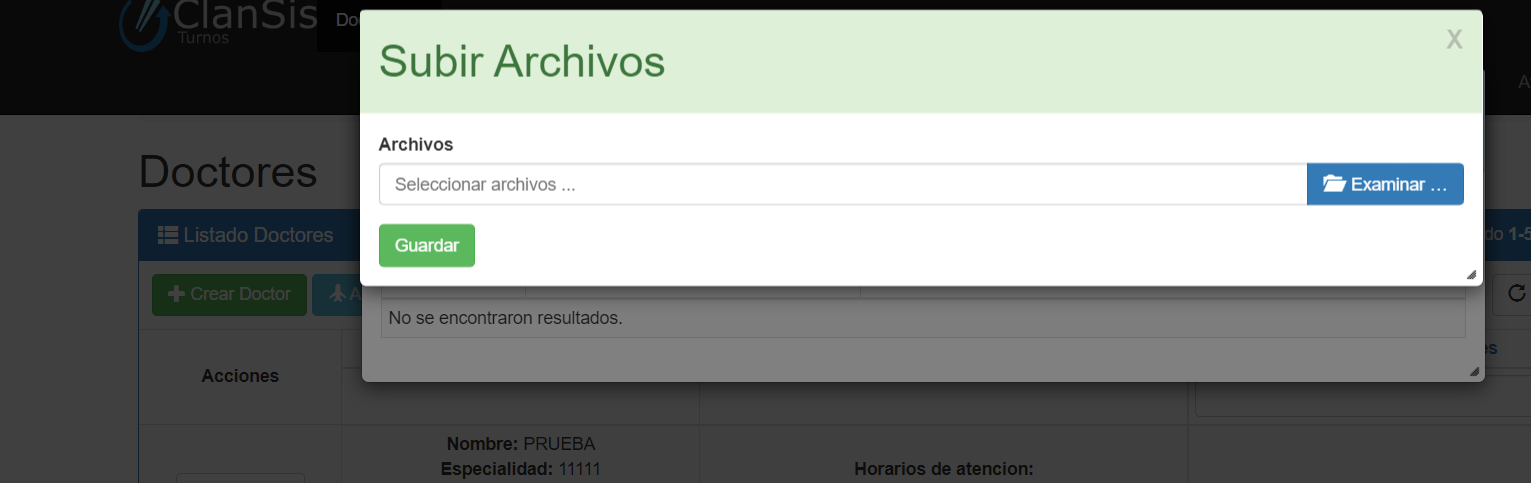 menú Doctores/Listar/Configurar Formulario Turnos Publico