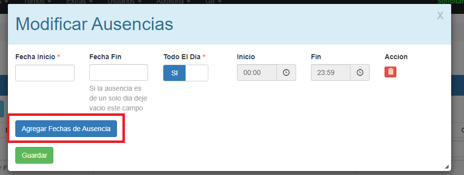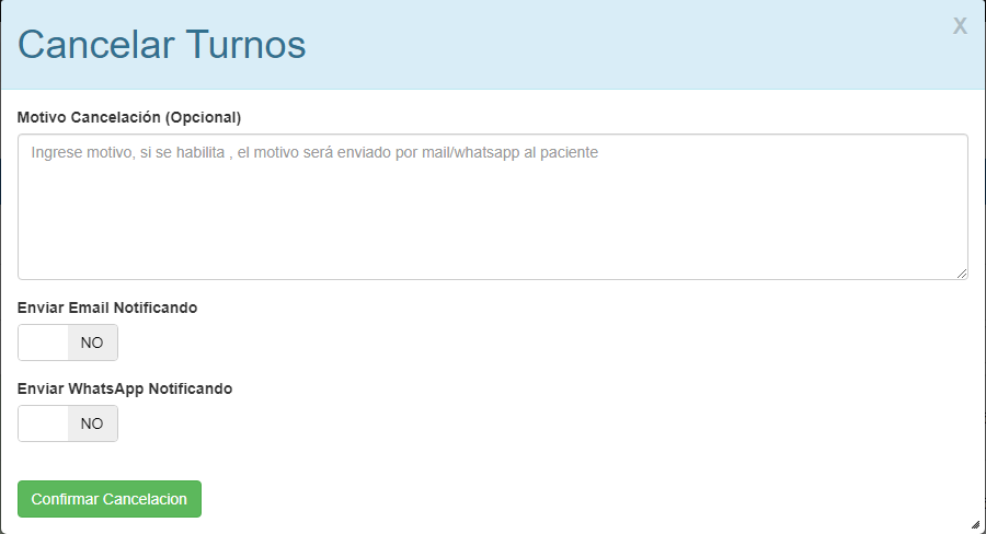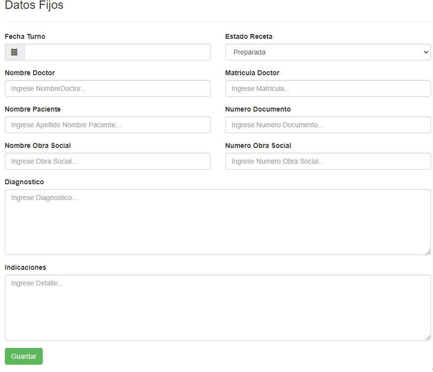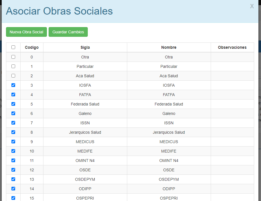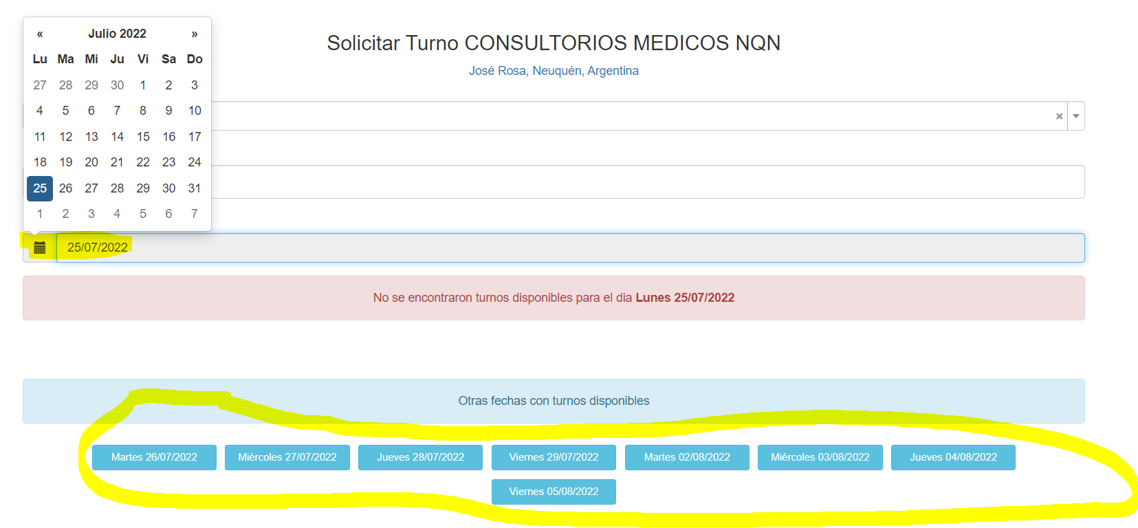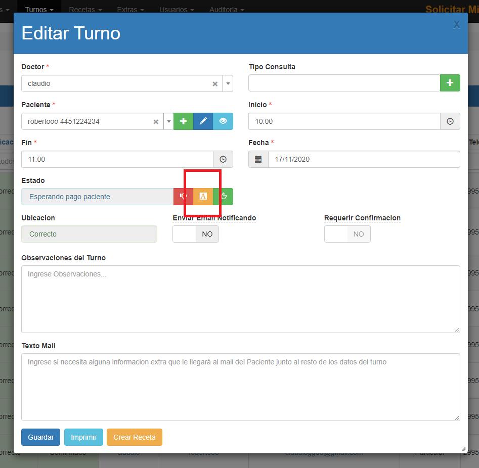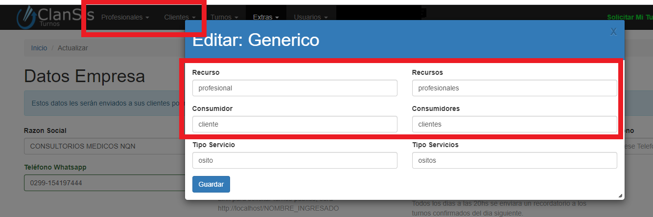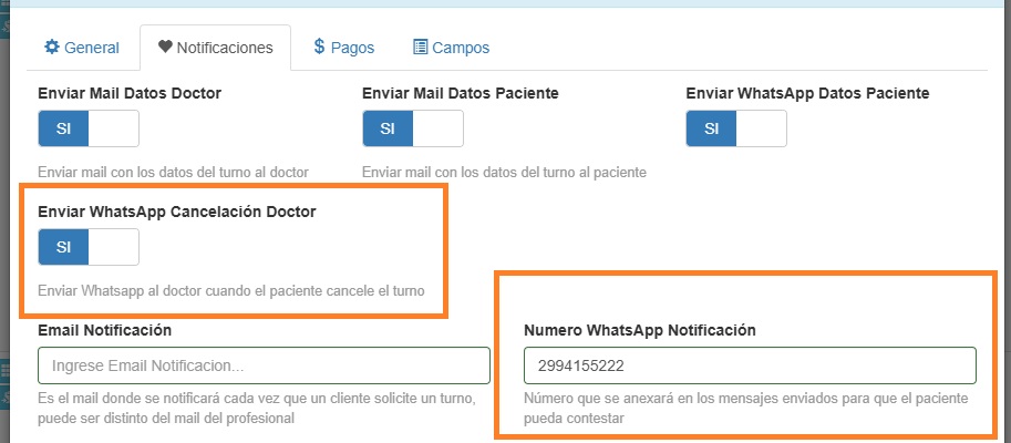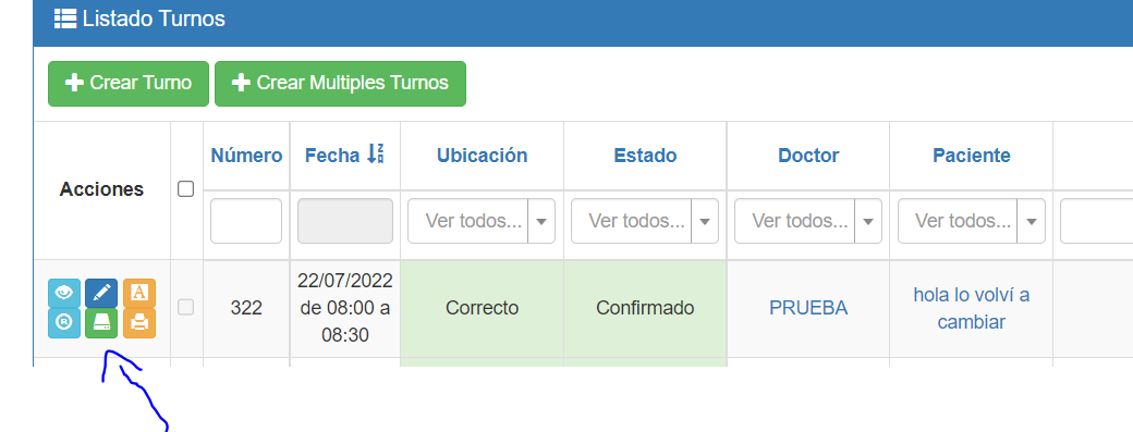 menú Doctores/Listar/Configurar Formulario Turnos Publico